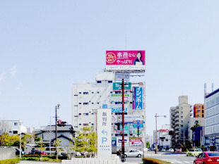 岡山駅まで歩いて16分、裁判所がある番町交差点のカドに建つ、看板がペタペタ貼ってある...more