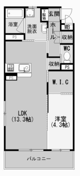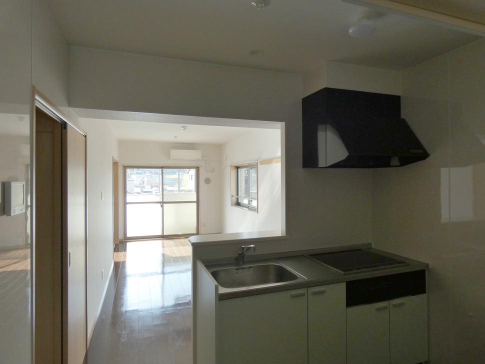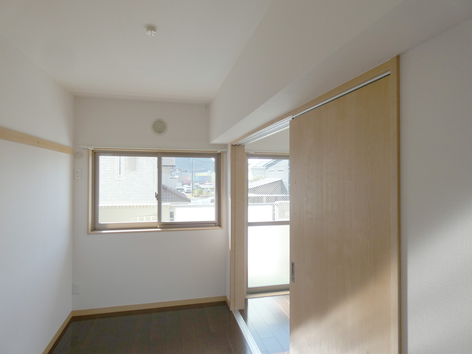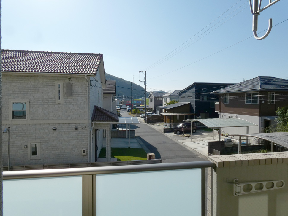 バルコニーは南向き、西面にも窓があって、開放的、陽当たり良好。