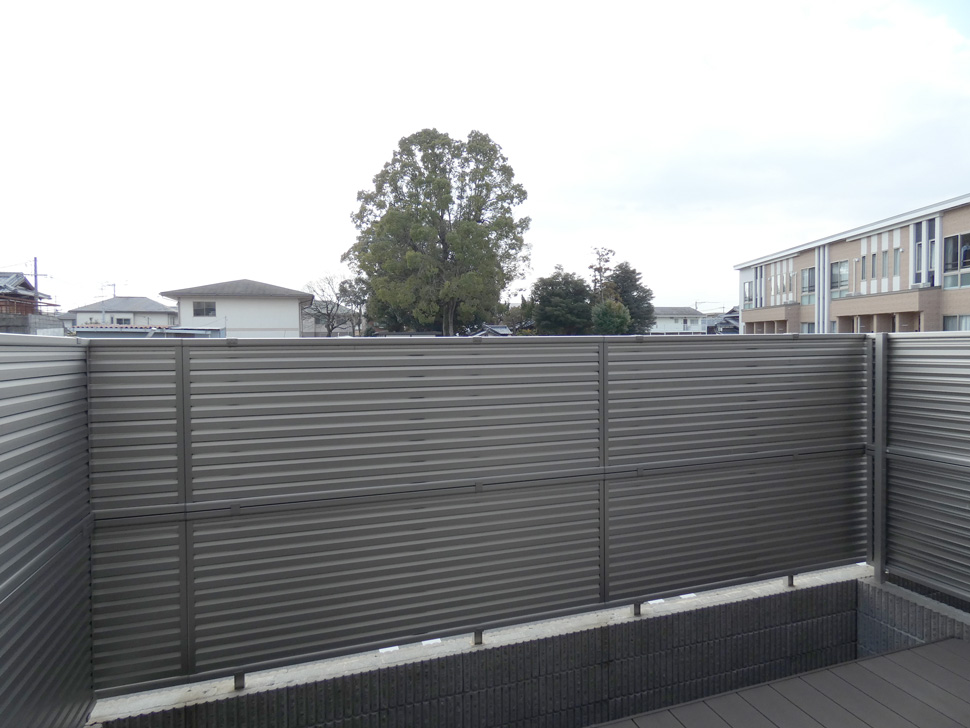 南面には、目隠しルーバーで囲われた専用庭あり。