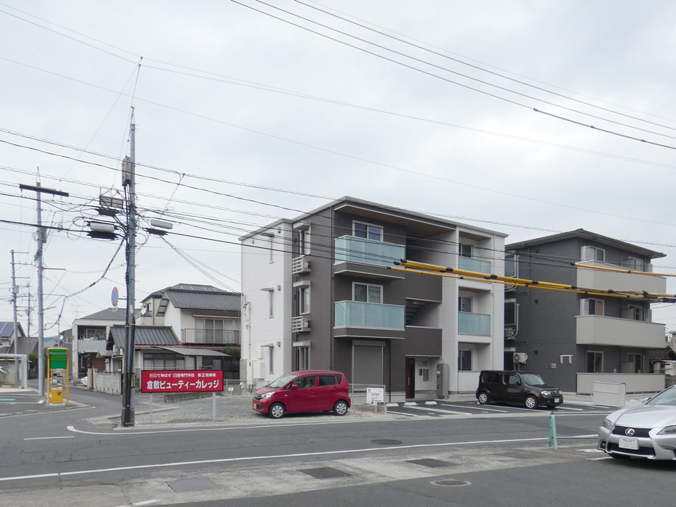 倉敷駅前の一坪バスの新築1LDKアパート(NET込、角)