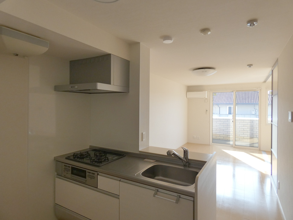 キッチンは対面式、3口コンロ。