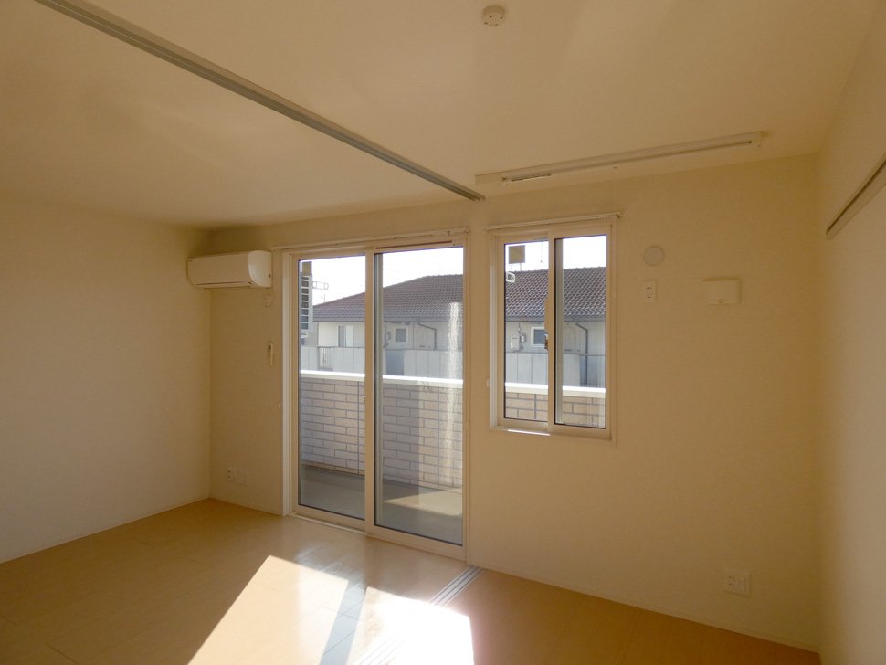 バルコニーは南向き、西面にも窓があって、陽当たり良好。