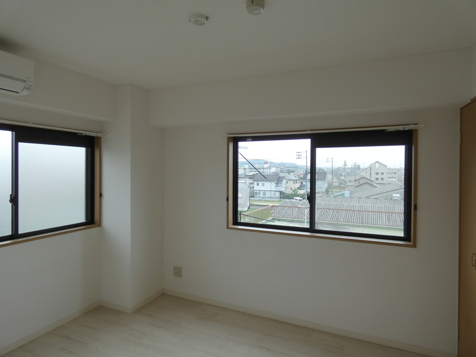 バルコニーは南向き、東面にも窓があるので陽当り、眺望良好。