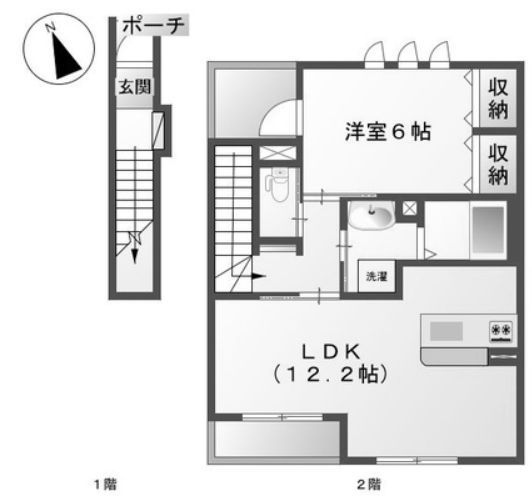 2012年築、バリアフリー設計、2階建て木造アパート。