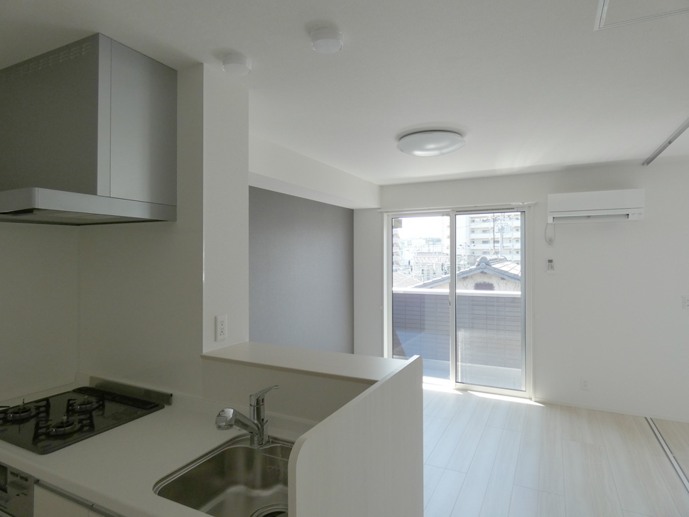 キッチンは対面式、3口コンロ。