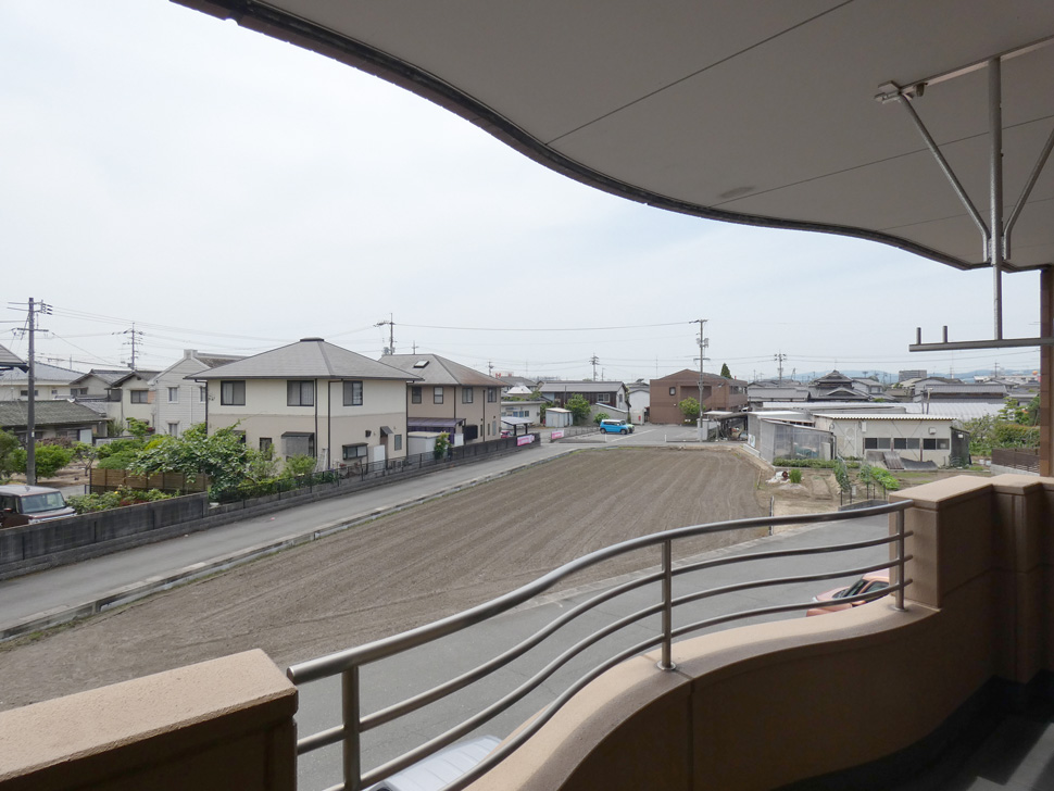 バルコニーは南向き、陽当たり良好。