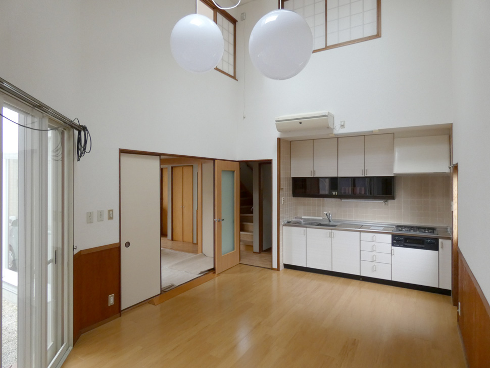 LDKは吹抜けになっていて開放的。(冬は暖まるまで時間掛かりそう)