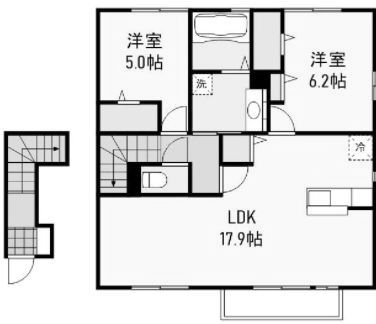 玄関は1階、室内階段で2階へ、東の角部屋。