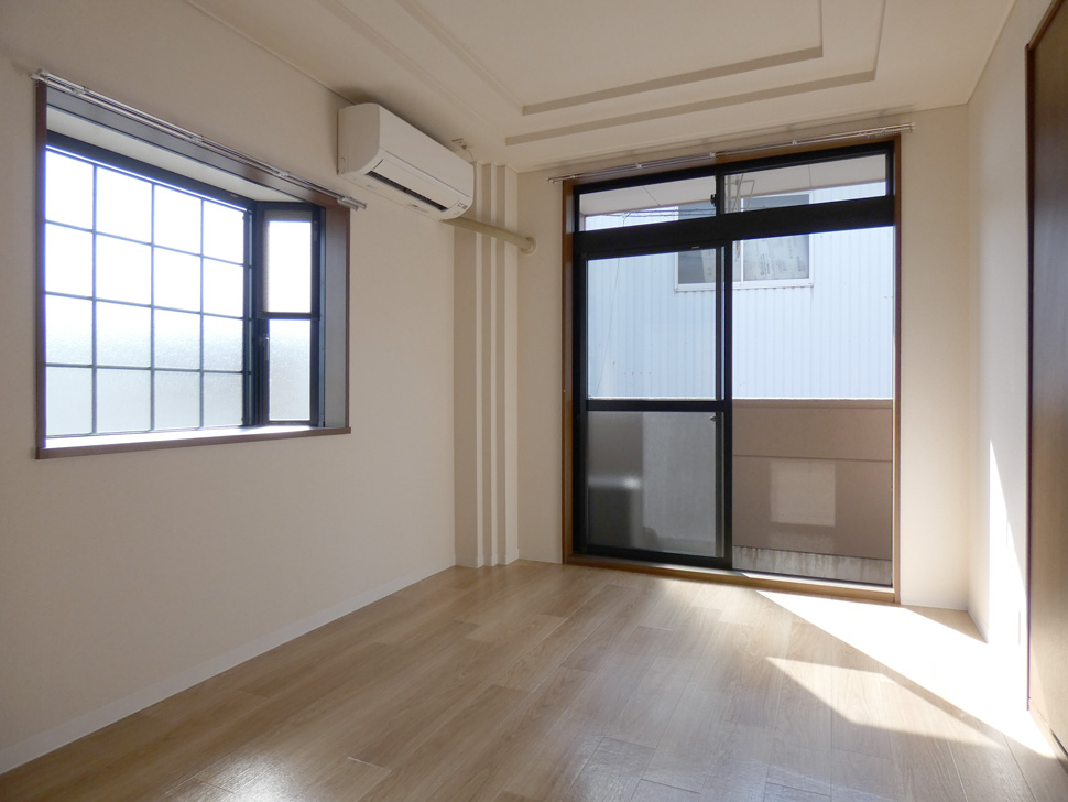 バルコニーは南向き、東面には出窓もあって陽当り良好。