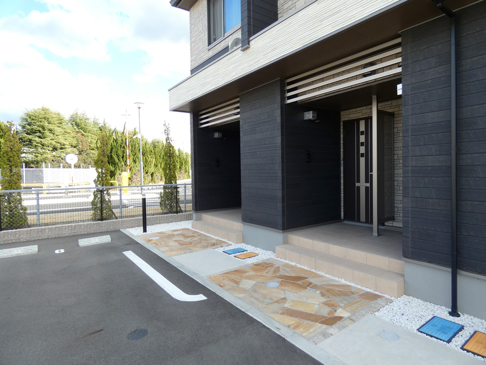 玄関は1階、室内階段で2階へ。