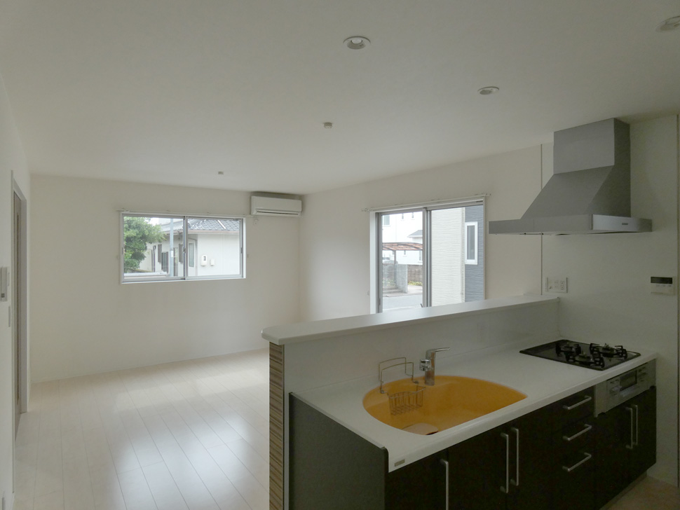 キッチンは対面式、3口コンロ。