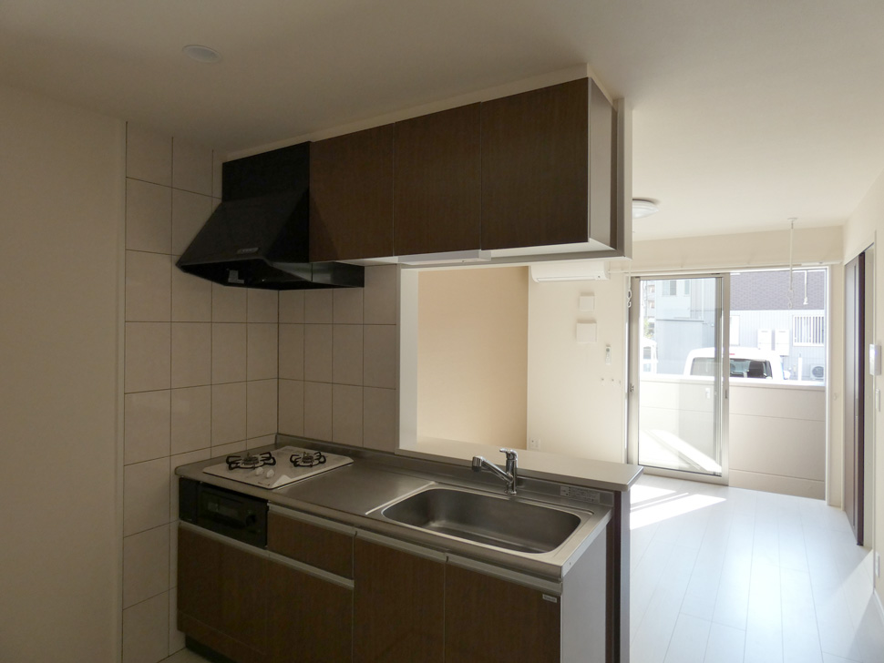 キッチンは対面式2口コンロ。